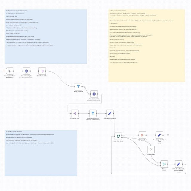 In a company where employees go abroad plenty of times and need to apply for different types of visas, they are connected to an internal custom GPT where they are asked step by step to upload requirements, depending on their passport and the country they need to visit.